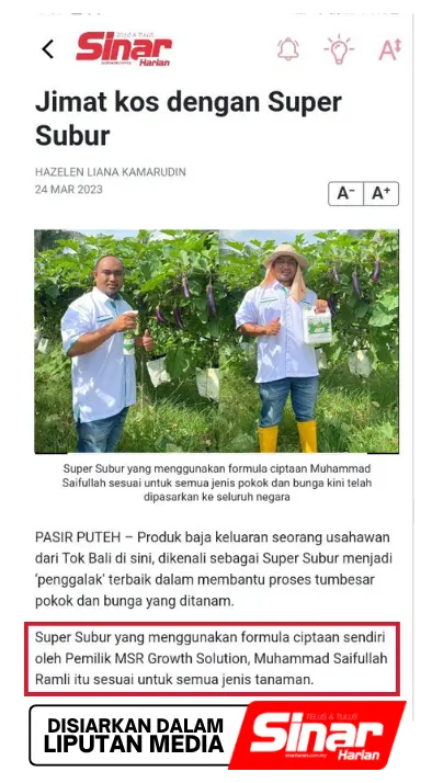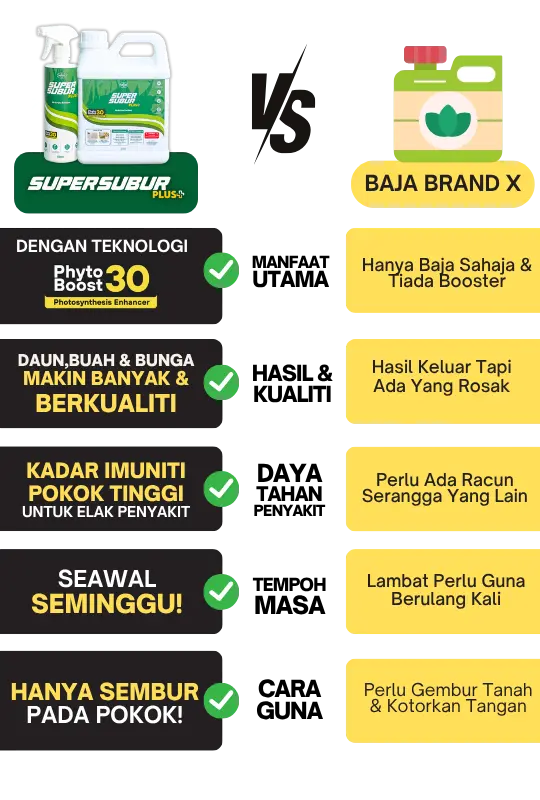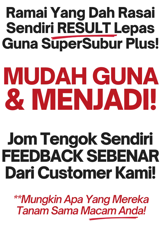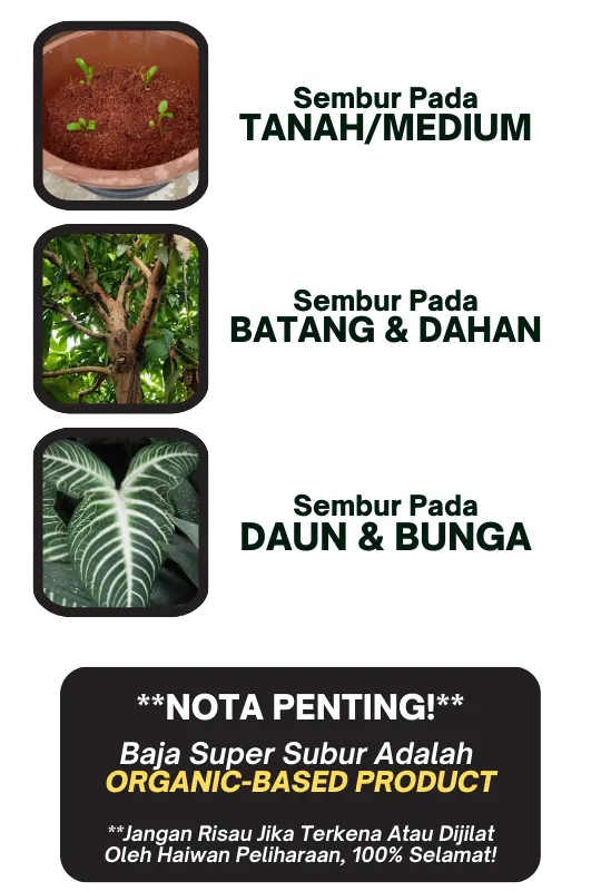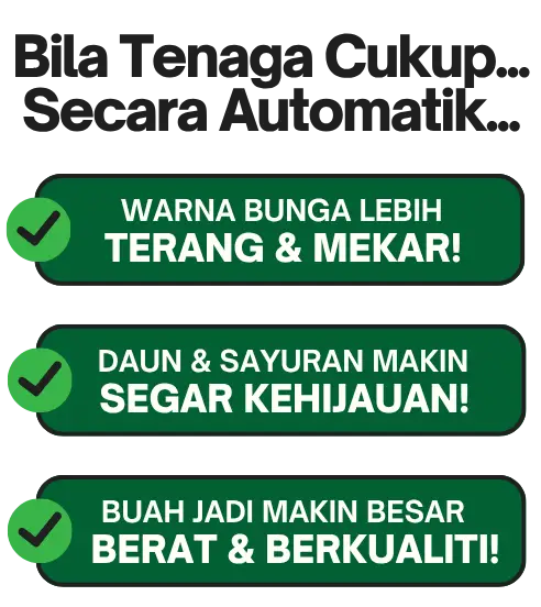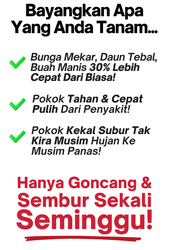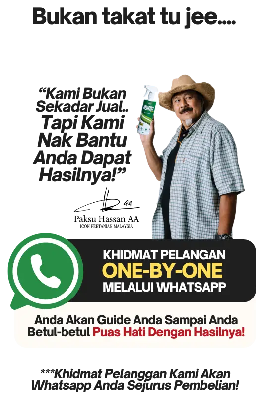 Dengan keberkesanan yang terbukti melalui ribuan testimoni, anda sebenarnya jimat kos kerana hasil lebih cepat, pokok lebih subur, dan penggunaan lebih efisien — hanya perlu spray sedikit tetapi kesannya maksimum