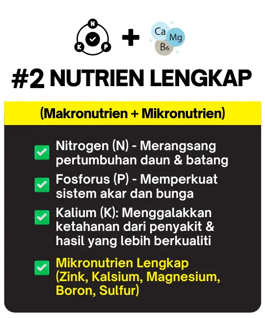 ✅ Ya! Baja ini mengandungi Magnesium & Zink, yang membantu mengatasi masalah daun kuning dan memastikan daun kekal hijau, lebat & segar.