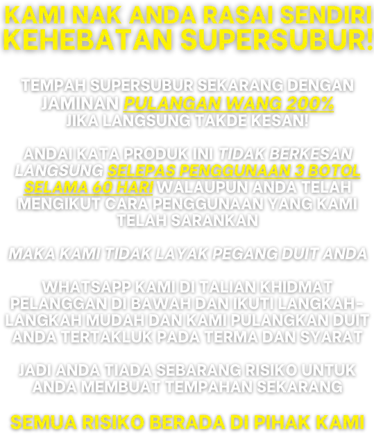 Tempah SUPERSUBUR Sekarang Dengan JAMINAN PULANGAN WANG 200%