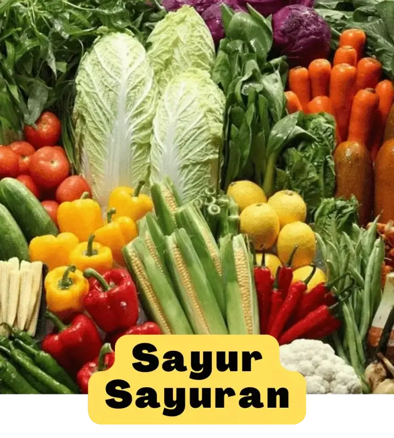 Sayur-sayuran: Bayam, sawi, kangkung, cili, tomato